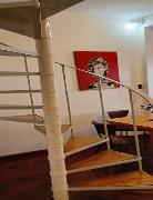 This is a nice one-bedroom apartment with a lovely terrace. It is centrally located, just one block away from the famous Florida street (pedestrian), the Galerias Pacifico Shopping Mall, close to the elegant Plaza San Martin Square, and three blocks away from the 9 de Julo Ave. The flat in on the 1st floor (no lift available). It is splitted off in three levels: the first level offers a living-dining room with a sofa-bed and a dining table for four people and a fully equipped kitchen. The second level has one bedroom with a double bed and one full bathroom. Upstairs has a small studio connected to the laundry room.. The apartment is equipped with high WIFI access, cable TV but Tv not available,air conditioning, heating, fridge with freezer, washing machine, dishes, kitchenware, linens and towels. Only long stays Pets are admitted ( please ask ) EXTRA COSTS: US$ 40 monthly for electrical consumption US$ 40 monthly for cable tv wifi TERRACE NOT AVAILABLE