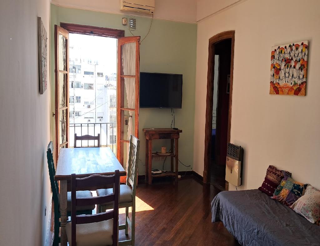 This nice and bright one-bedroom apartment is located in the historical San Telmo district, very close the Dorrego Square, with its Sunday flea market, tango dancers and the numerous coffee shops and restaurants open nearly round the clock. The flat offers a living-dining room with a sofa-bed and dining table for four people, one bedroom with a double bed, an equipped kitchen and one full bathroom. It is equipped with Wi-Fi internet access, cable TV, air conditioning in living room, fridge with freezer, microwave, dishes, kitchenware, linens and towels. A warm option with a great location.NOTE : an additional monthly price of us$ 30 will be charge for electrical consumption an proportional for shorter stays