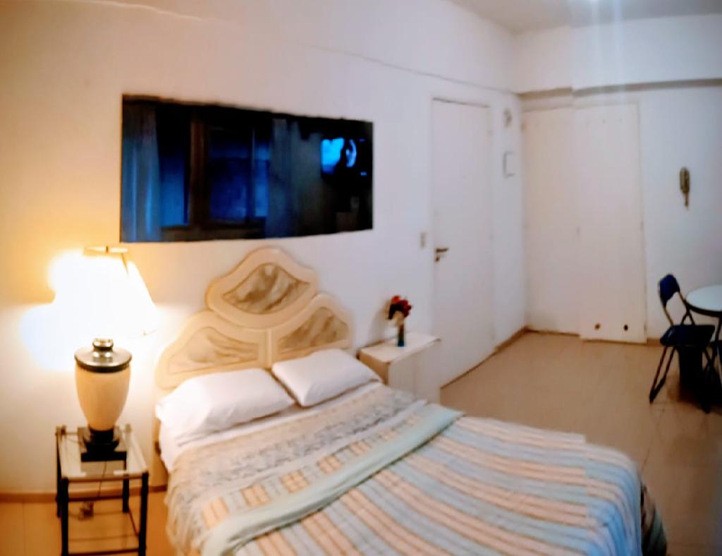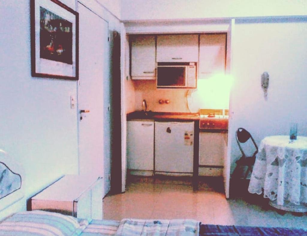 This simple studio is located in the heart of Recoleta neighborhood, just steps away from the Recoleta Mall, good restaurants, museums, coffee-shops, cultural centers, pubs and movie theaters. It has a double bed and dining table, one bathroom and equipped kitchenette. The flat is very bright with a nice view, located in an excellent building tower with 24 hours doorman. It is equipped with Internet WiFi Cable TV, endebbed air conditioning (cool/heat), microwave, under counter fridge, dishes, kitchenw are, and linens and towels.Note : For stays of 30 days or more, a monthly additional of US$ 20 will be paid for electricity consumption.