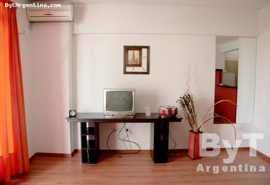 This brand new apartment is located in the Buenos Aires dowtown, just one block away from the Corrientes Ave. -known as the avenue that never sleeps because its multiple bars, bookstores, cinemas and theaters open late at night-, with its several public transportation including the subway stop. This studio offers a living-dining area, a bed area with twin beds (convertible in a queen size bed), one open kitchen, a full bathroom and a balcony facing the backyard. It is equipped with Wi-Fi internet access, cable TV, Stereo, air conditioning, refrigerator with freezer, microwave, dishes, kitchenware, linens and towels. The building offers gated security, swimming pool (available only in summer season) and gym.