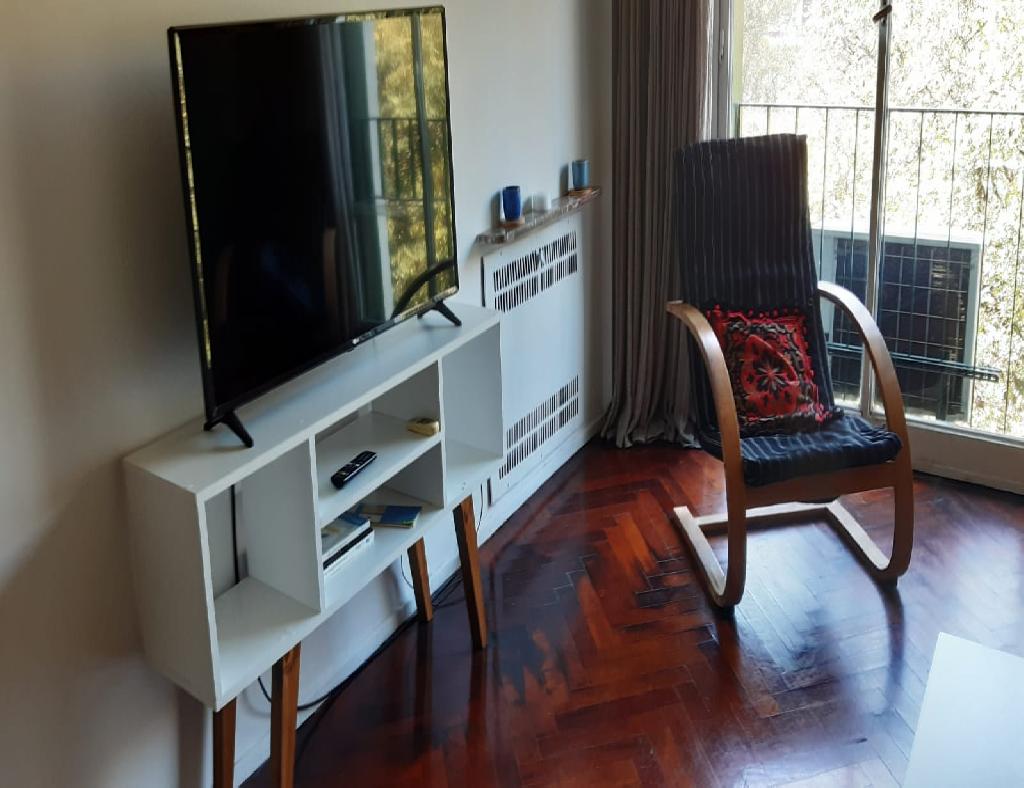 Amplio y comodo apartamento de dos dormitorios en una ubicacion centrica, a solo una cuadra de la Avenida Santa Fe y la Avenida 9 de Julio. El apartamento ofrece sala-comedor con sofa cama y mesa para seis personas, con una magnifica vista a los parques de la ciudad, dormitorio principal con cama doble, segundo dormitorio con escritorio, baño completo, aseo y cocina equipada con desayunador. El apartamento cuenta con internet (wifi), TV por cable, heladera con congelador, lavadora, vajilla, utensilios de cocina, sabanas y toallas. El edificio cuenta con portero 24 horas. Costo extra mensual de us$ 30 por consumo electrico. Estadias minimas de 30 dias