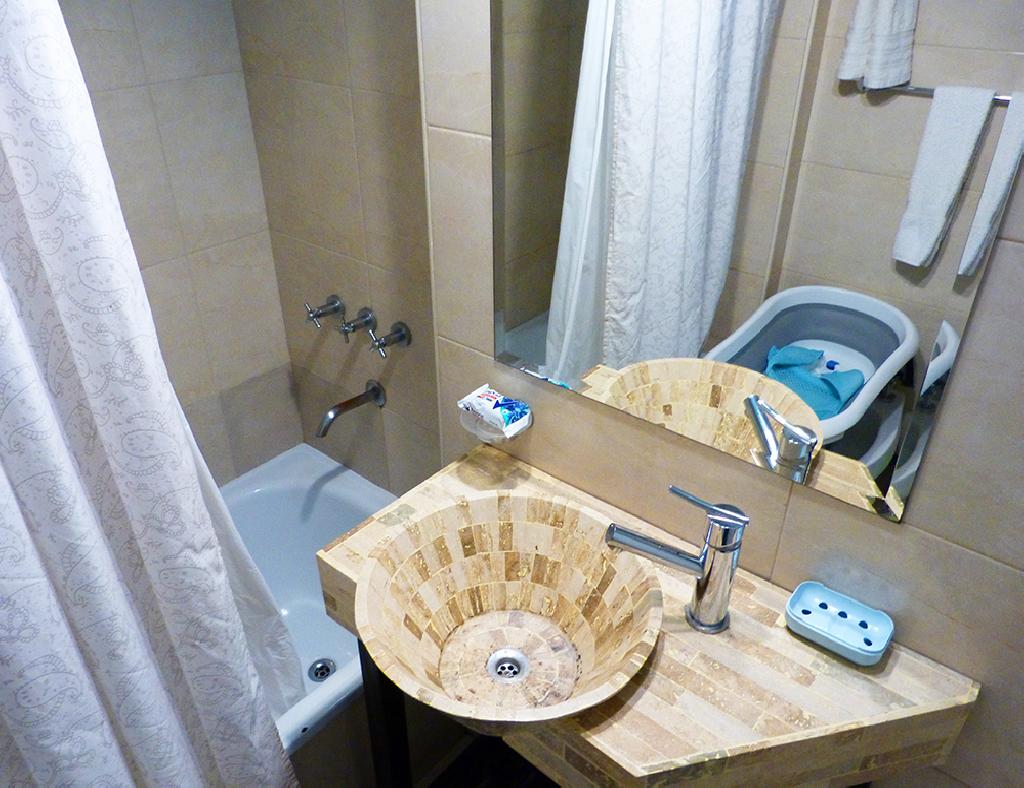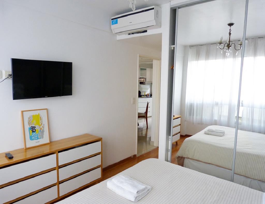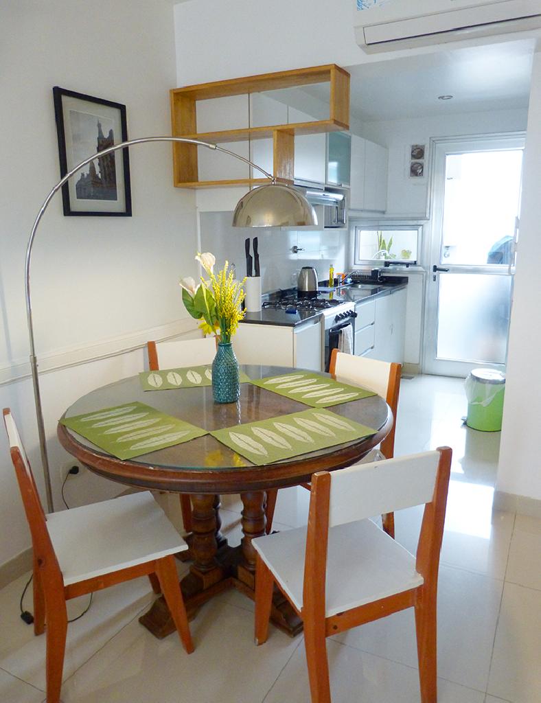 Modern and bright one-bedroom apartment located in the Palermo Viejo district, just half a block from the Santa Fe avenue and the subway stop, an area full of restaurants, coffee-shops, pubs, design shops and several public tranportation. The flat offers a living-dining room with a sofa-bed and a table round for four peple, the bedroom with two twin beds (convertible in a queen size bed as shown in the pictures) bed, one full bathroom. ome half bath, an equipped kitchen and a balcony facing the street. The apartment is equipped with Wi-Fi internet access, cable TV, air conditioning, fridge with freezer, BBQ,washing machine, microwave, dishes, kitchenware, linens and towels.NOTE: U$1 a day is paid for electric consumption.