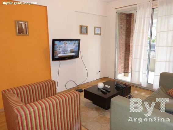 Spacious one-bedroom apartment in a modern building. It is located in the Palermo Viejo district, an area surrounded by restaurants, coffee-shops, pubs, antique markets and design shops. The flat offers a living-dining with a sofa-bed and a table for four people, one bedroom with a double bed, one full bathroom, an equipped kitchen and a large balcony facing the street. The apartment is equipped with Wi-Fi Internet access, cable TV, air conditioning in living room, central heating, fridge with freezer, microwave, dishes, kitchenware, linens and towels. The building has a swimming pool on the terrace (available only in summer season) and laundry.