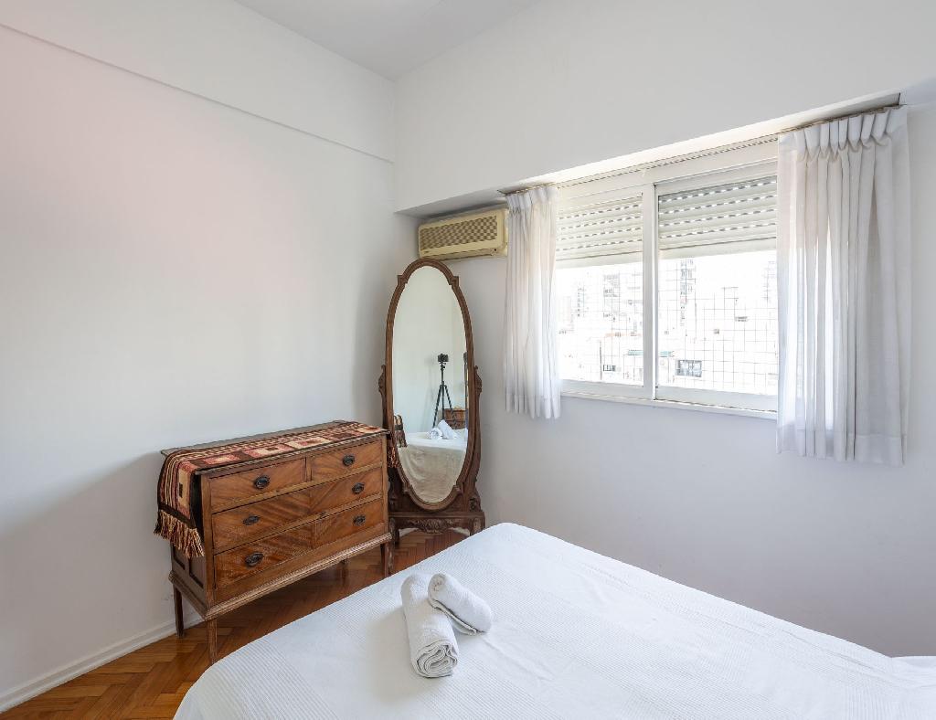 Muito bom apartamento de dois quartos muito bem localizado no bairro de Palermo, em frente ao parque Las Heras e muito perto da avenida Santa Fé, shopping Alto Palermo, estação de metrô, cinemas, restaurantes, cafés e diversos transportes públicos. O apartamento oferece uma sala de estar / jantar com sofá e mesa redonda para quatro pessoas, dois quartos com cama de casal, cozinha equipada, casa de banho completa e varanda para a zona sossegada do edifício. Está equipado com internet wi-fi, Smart TV, ar condicionado no quarto 1 e sala de estar, aquecimento central, maquina de lavar, geladeira, microondas, louças, lençóis e toalhas. o prédio tem segurança 24 horas (totem) Uma ótima opção, luminosa e confortável com uma excelente localização.