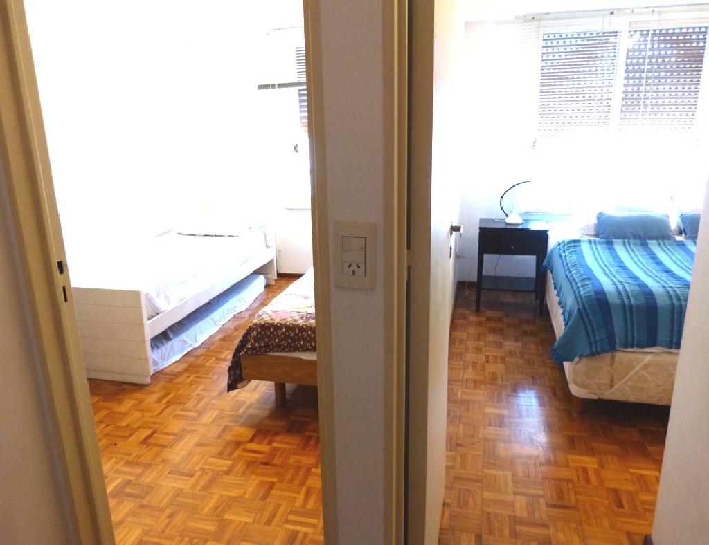 Bright two bedroom apartment located in the Congreso neighborhood, overlooking the Plaza del Congreso and Avenida de Mayo with its famous restaurants and cultural activities. The apartment offers a living-dining room with sofa and dining table for four people, two bedrooms: the master one with a double bed and the second one with two twin beds. Kitchen equipped with gas stove, refrigerator with freezer and washing machine. Bathroom with tub and bidet. The apartment is equipped with Internet wi-fi, microwave, crockery, kitchenware, linens and towels. Fan in all rooms and air conditioning in living-room and master bedroom. Central heating