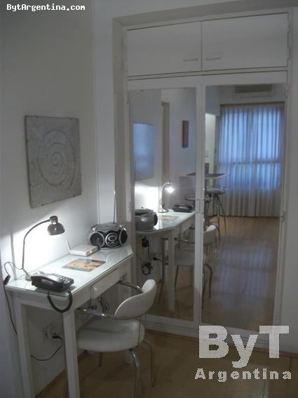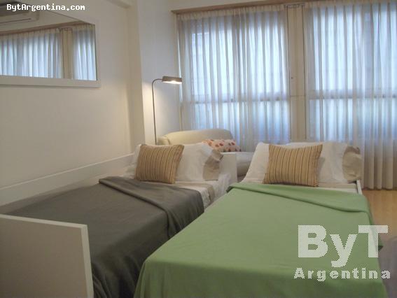 This is a nice and quiet studio located in the Congreso district, just one block from the Plaza del Congreso and the Av. de Mayo with its several restaurants and cultural activities. The flat has one sofa bed with tqo twin beds (extra bed pulls out) and one individual sofa bed, one full bathroom and an equipped kitchenette. The apartment is equipped with Internet (cable modem), Cable TV, air conditioning, refrigerator with freezer, microwave, dishes, kitchenware, linens and towels.