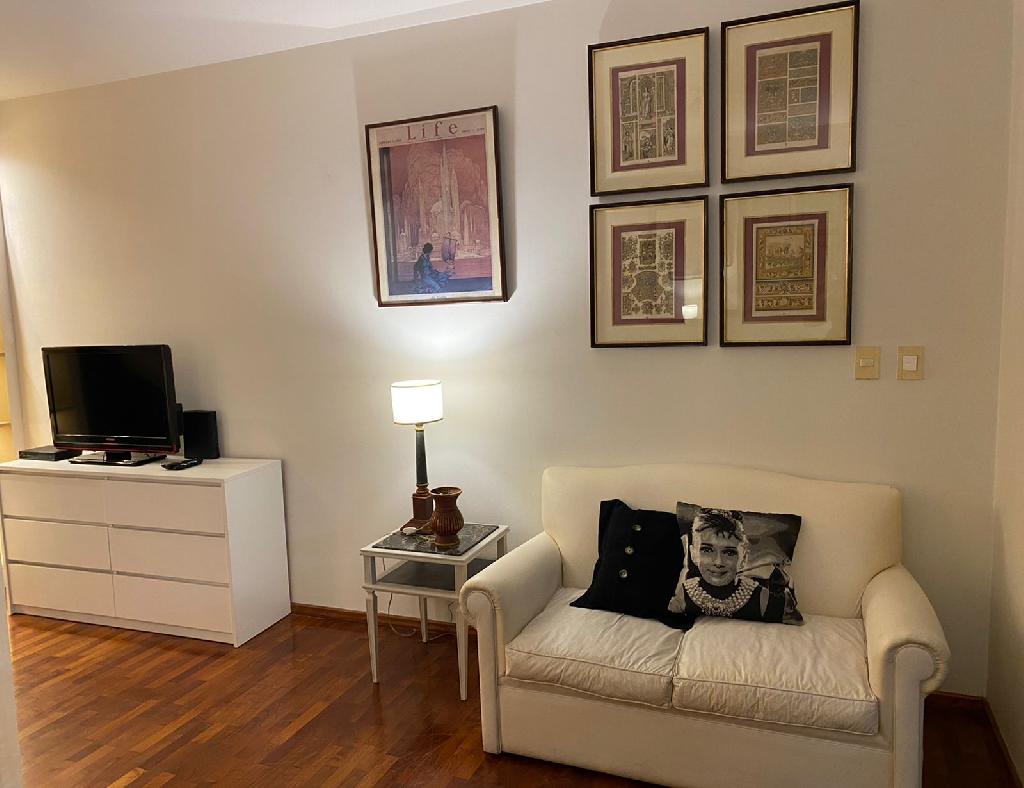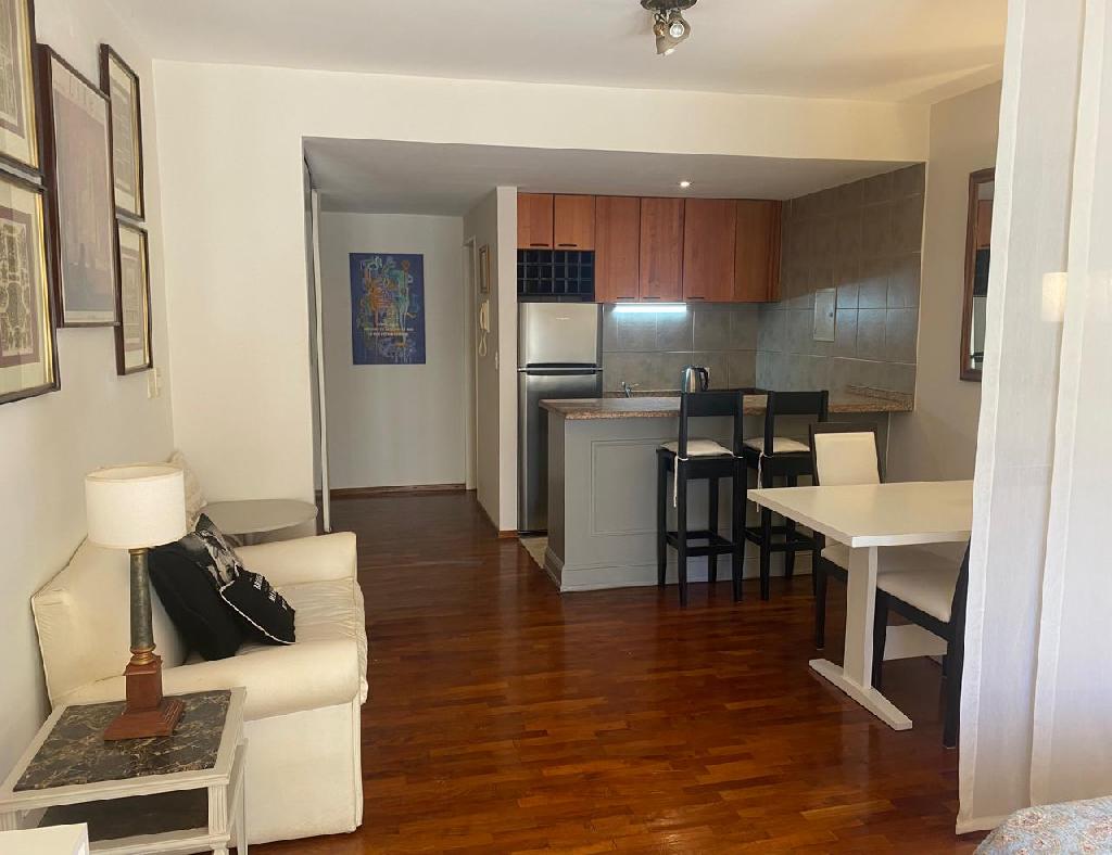 Hermoso estudio ubicado en el barrio de Recoleta, con sus numerosos museos, centros culturales, pubs, bares, cines y buenos restaurantes . El departamento ofrece un living-comedor con dos sofas y una mesa conetada a la cocina, un area dormitorio con una cama doble, un ba�o completo y un balcon con vista al contrafrente. Esta equipado internet Wi-Fi, TV por cable, aire acondicionado (frio-calor), heladera con freezer, microondas, vajilla, utensilios de cocina, ropa de cama y toallas . El edificio cuenta con laundry. Esta es una muy buena opcion en una de las mejores zonas de Buenos Aires. Costo extra diario de us$ 1 por consumo electrico