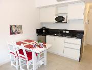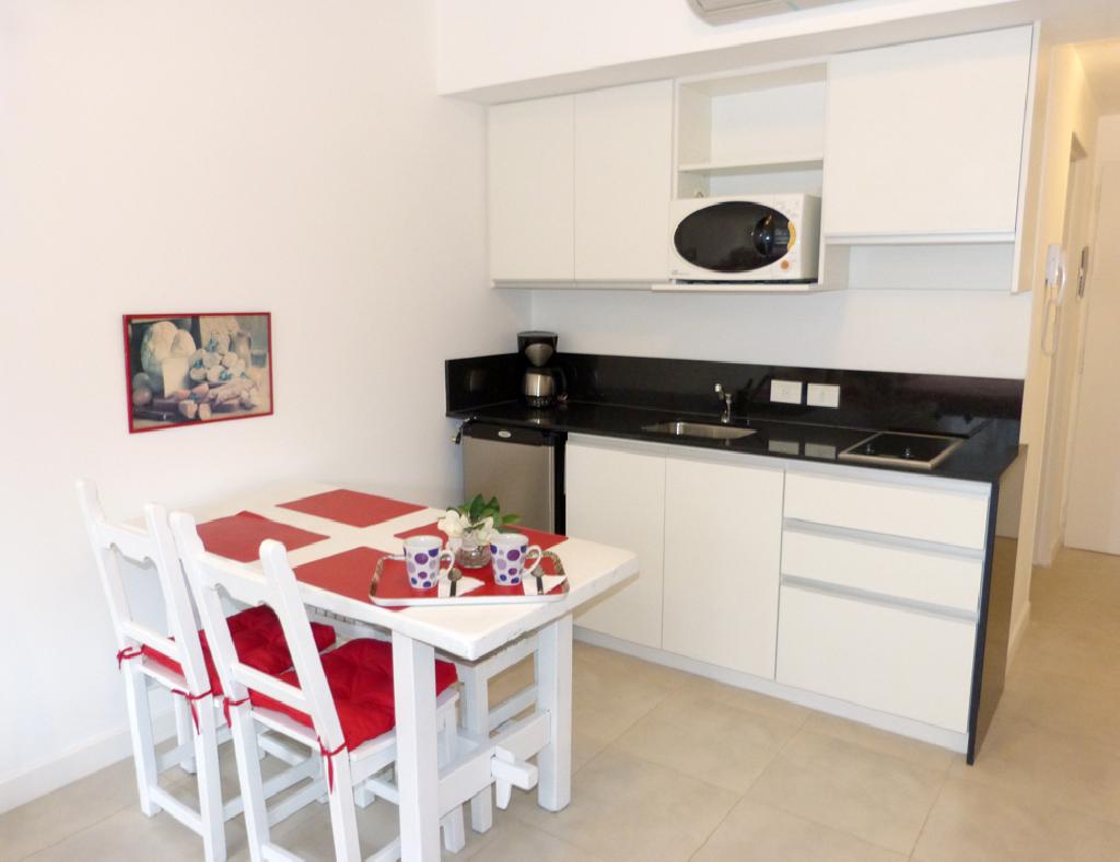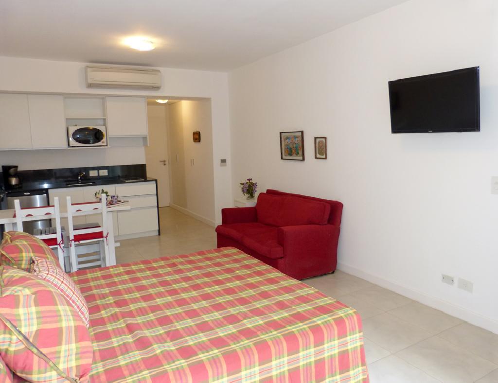 Beautiful studio in a brand-new building. It is greatly located in the Recoleta district, with its several museums, cultural centers, pubs, bars, cinemas and good restaurants. The flat offers a nice living-dining with a sofa and a table for four people, a bedroom area with a double bed, an equipped kitchen, one full bathroom and a lovely balcony facing the back yard. It is equipped with Wi-Fi internet access, cable TV, air conditioning (cold-heat), fridge, microwave, dishes, kitchenware, linens and towels. The building has a jacuzzi on the terrace. This is a nice option, warmly decorated, in one of the best locations in Buenos Aires.