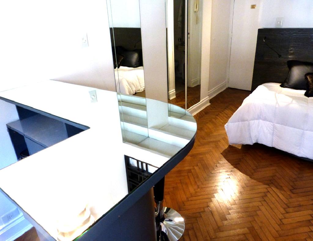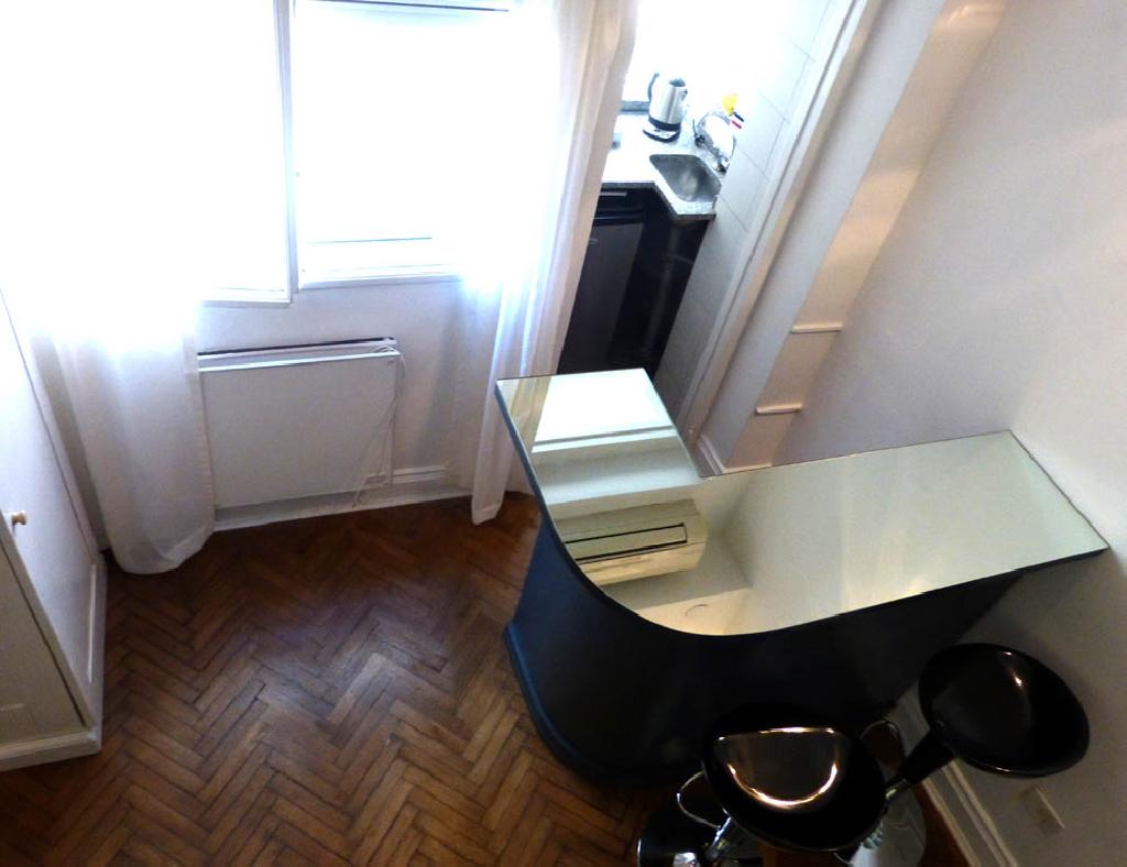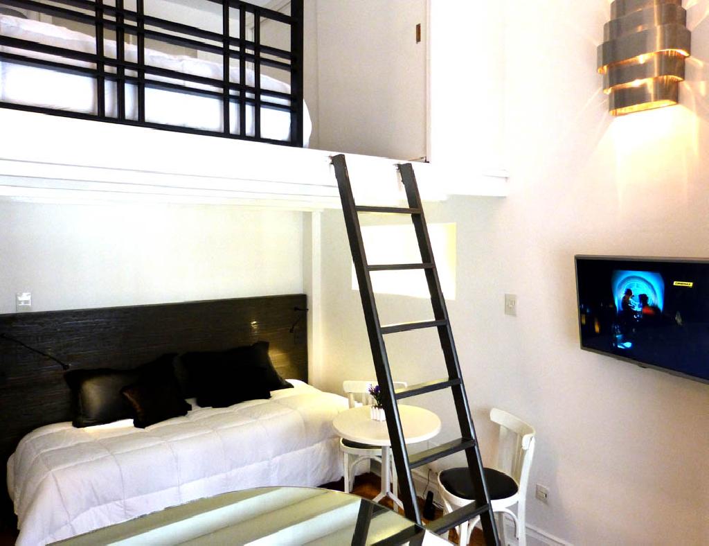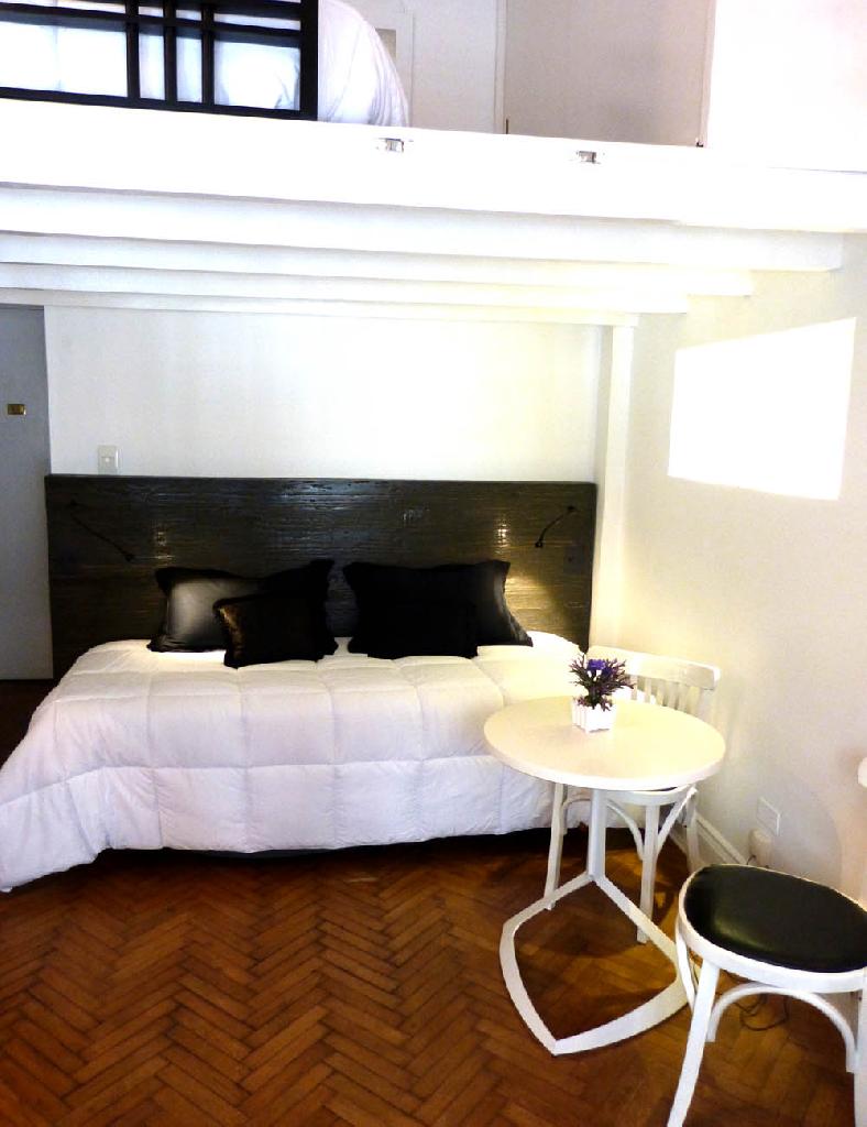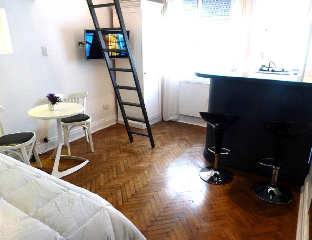 Cozy studio with mezzanine, quiet and great location in the heart of Recoleta, one of the most beautiful areas of the city, surrounded by parks and squares, numerous restaurants, bars and shops, as well as various museums and the famous cemetery of Recoleta. The apartment has a living-dining area, a small kitchen, two stoves, microwave oven, coffee maker, toaster, frigobar and a bathroom with bidet and shower. In the mezzanine there is a doublel bed and a comfortable wardrobe / closet. It has safe-box It is equipped with Internet access (WiFi), cable TV, air conditioning, sheets and towels. An excellent choice in the most elegant area of the city. Extra daily cost of us$ 1 for electrical consumption