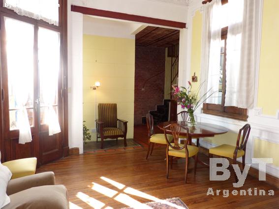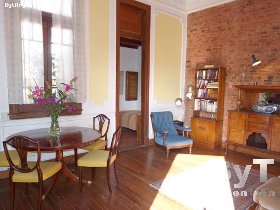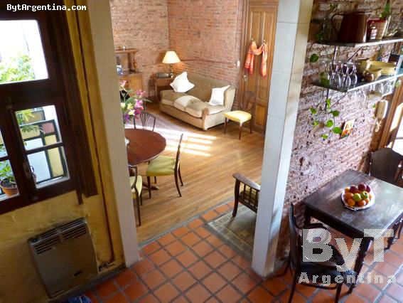 This remarkable two-bedroom apartment is located in the heart of the San Telmo antique area, a few blocks from the famous Plaza Dorrego tango square. The flat is split in two levels: in the first one, it offers a living-dining room with a sofa and a round table for four people, one bedroom with a single bed, one toilette and an equipped kitchen with breakfast area. Upstairs, there is a master bedroom with a double bed and a small desk area, one full bathroom and a lovely private terrace. The apartment is equipped with Internet access (WiFi), stereo, air conditioning in master bedroom, refrigerator with freezer, microwave, kitchenware, dishes, linens and towels. A great option superbly located.No lift available and no Cable TV