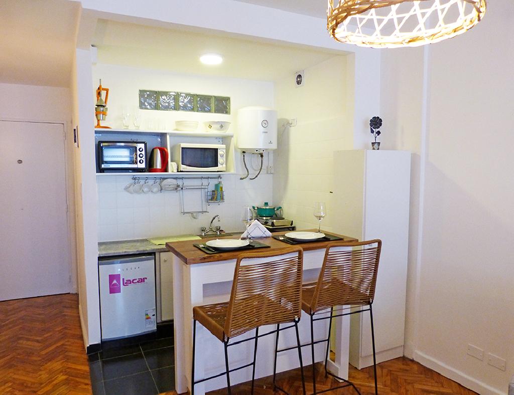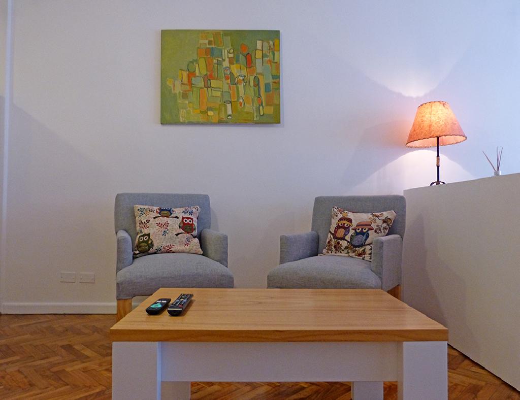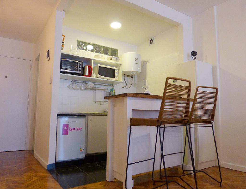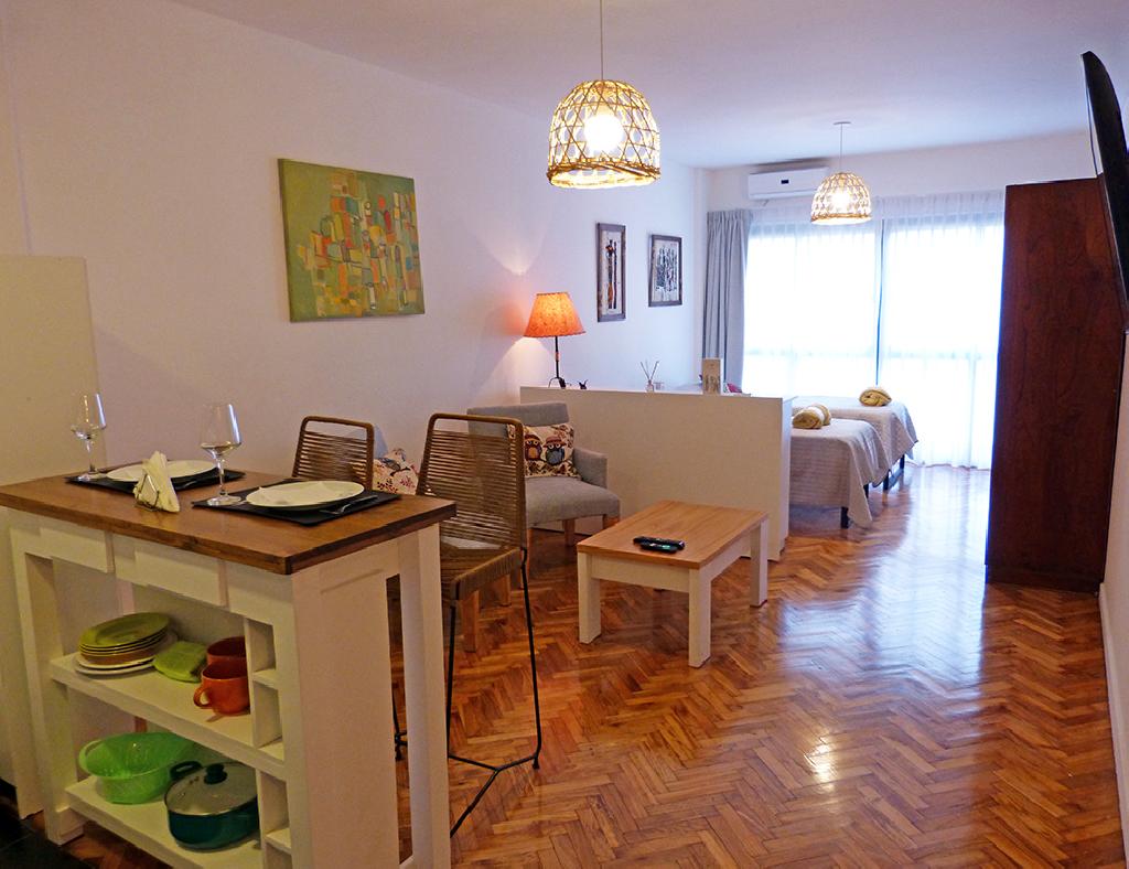 Very nice and bright apartment greatly located, just half block from Santa Fe Avenue traditional street full stores, restaurants, bars and cinemas and the subway stop. It offers a living dining area with two armchairs, a dining bar connected to an equipped kitchen, a bedroom with two twin beds (convertible in a queen size bed upon request), and a full bathroom. It is with Wi-Fi Internet access, Cable TV, air conditioning (cold-heat), fridge, dishes, kitchenware, linens and towels. A very nice option with an excellent location.