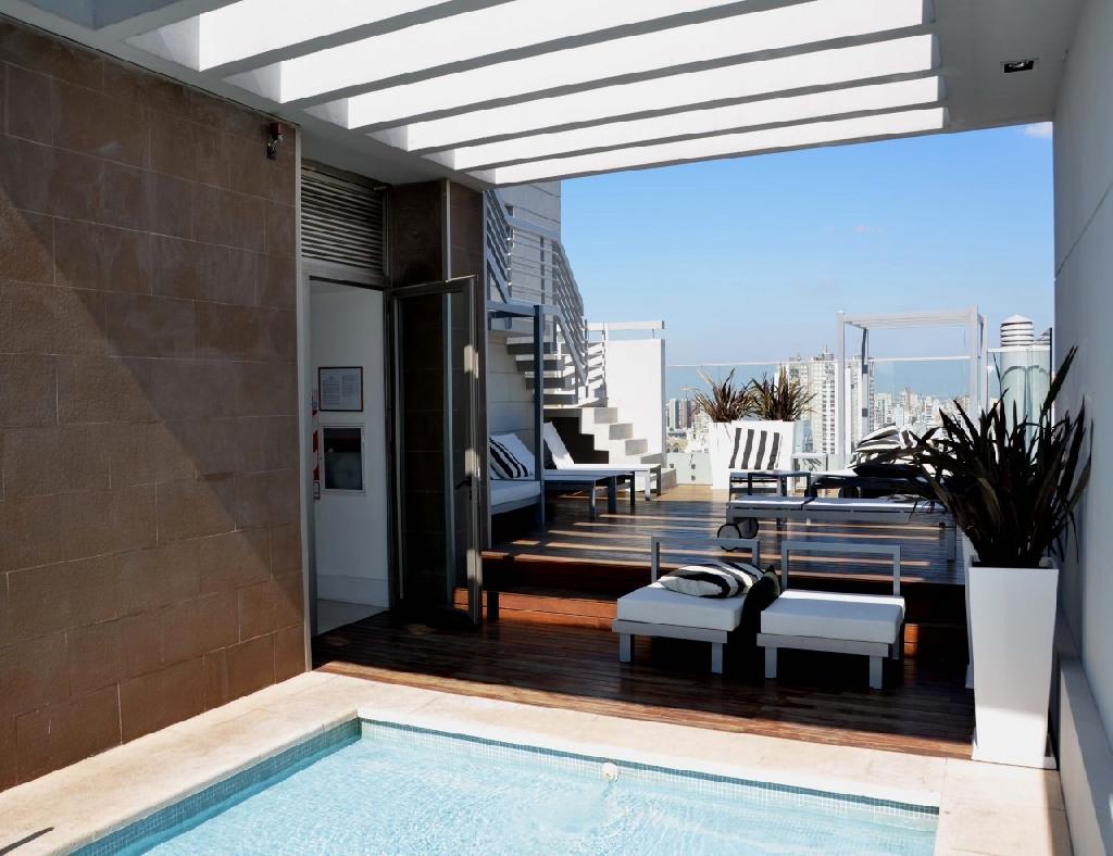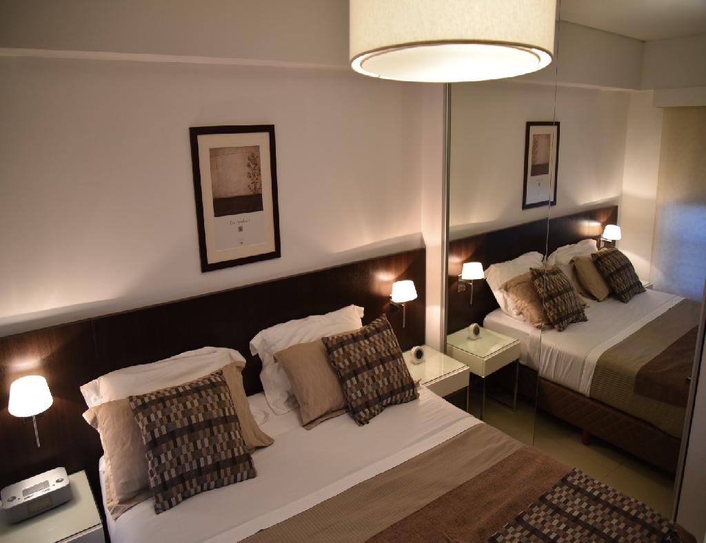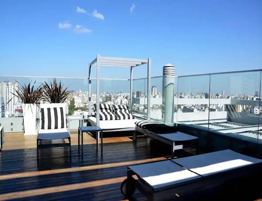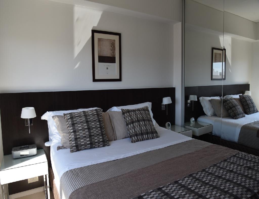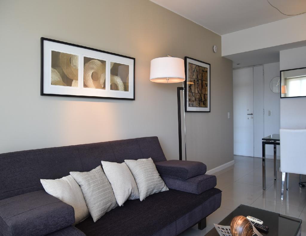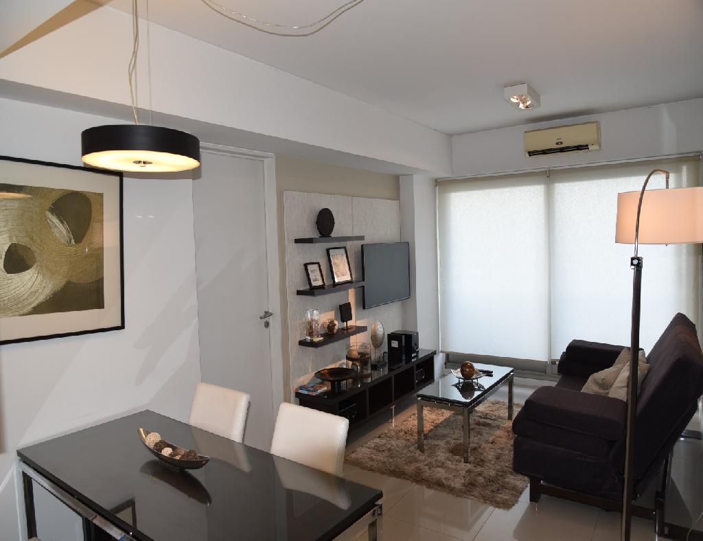 This is a beautiful one-bedroom apartment in a brand-new building. It is located in Palermo neighbourhood, a few blocks away from the Santa Fe Ave. where visitors will find several bars and restaurants, the Alto Palermo shopping mall and the subway stop. The flat offers a cute living-dining room with a comfy sofa and a dining table for four people, one bedroom with a king size bed (1.80 x 2m), an equipped kitchen, one full bathroom, one half bath and a lovely balcony with a great open view. The apartment is equipped with Internet (WiFi), cable TV, DVD, air conditioning, fridge with freezer, microwave, dishes, kitchenware, linens and towels. The building has 24 hours doorman, swimming pool (available only during the summer season), laundry, gym, solarium and sauna. A great option, bright, comfortable and beautifully furnished. Maid service included.