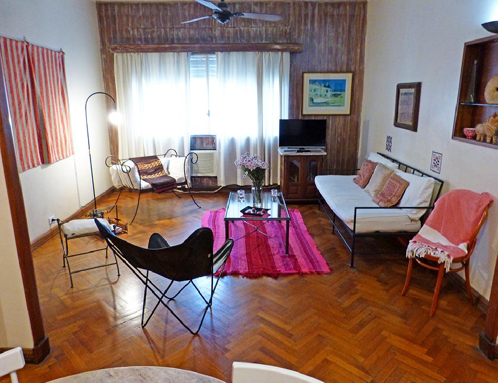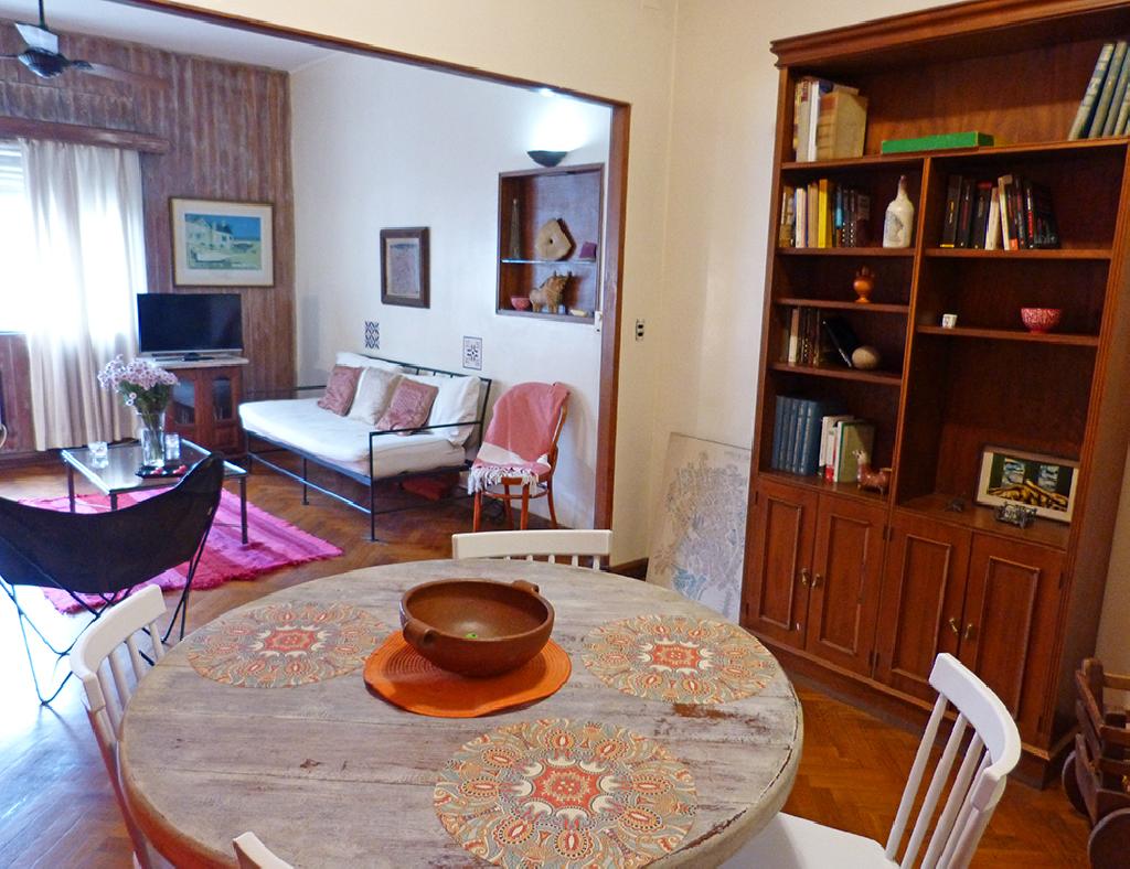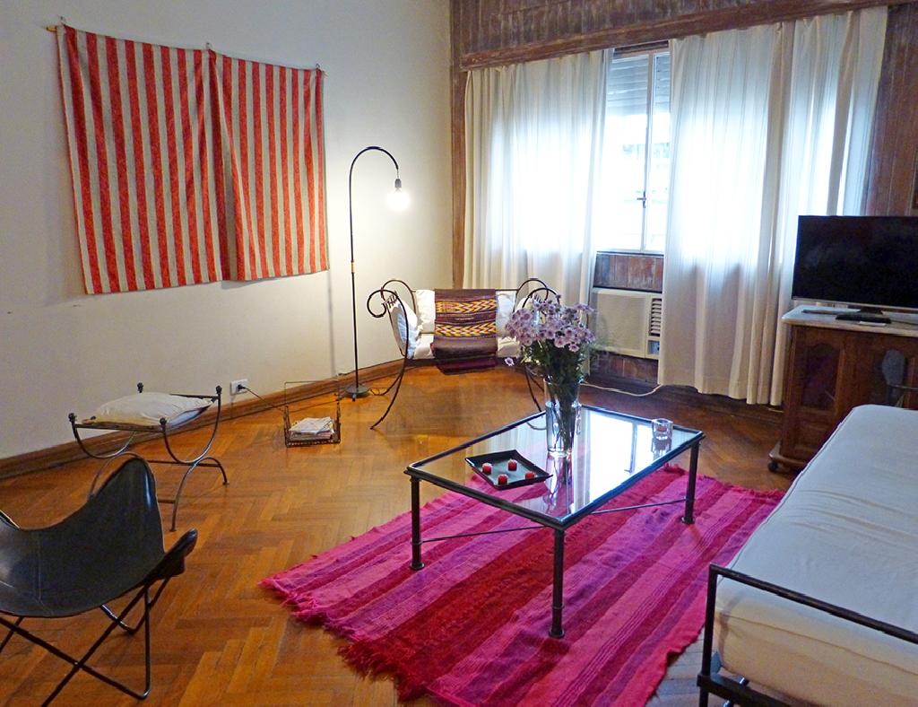 Bright and sunnny two-bedrooms apartment located half a block from Santa Fe avenue and one block from the subway stop. The apartment has two comfortable bedrooms (one of them with a queen size bed and the second one with two twin beds. The living dining-room is also comfortable and bright with a dining table for four. Equipped kitchen with washing machine.Nice and bright option, comfortable and centrally located. Apartment with WIFI and air conditioning in all areas. Internet access.NOTE : Daily extra cost of us$ 1 for electrical consumption.