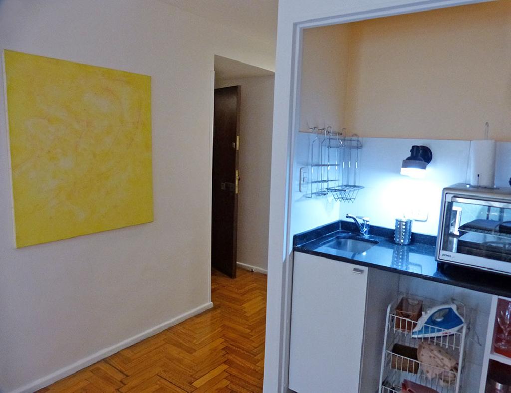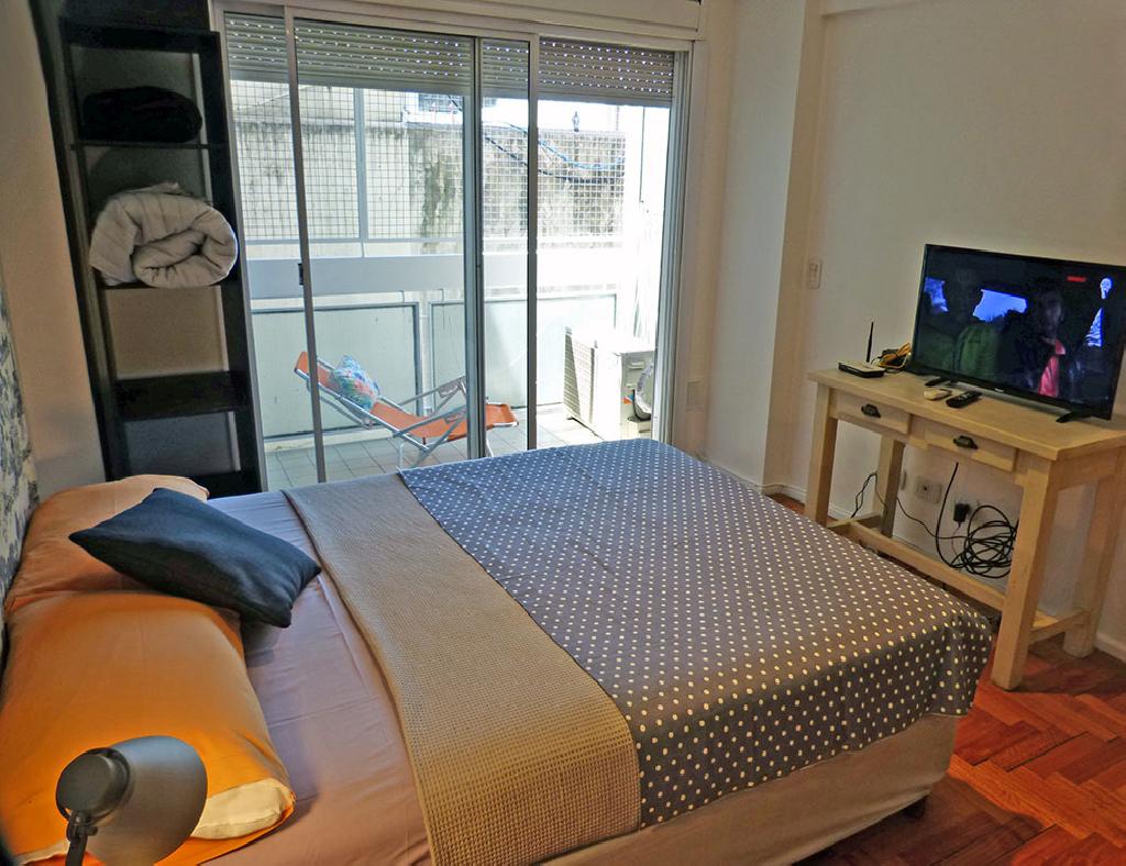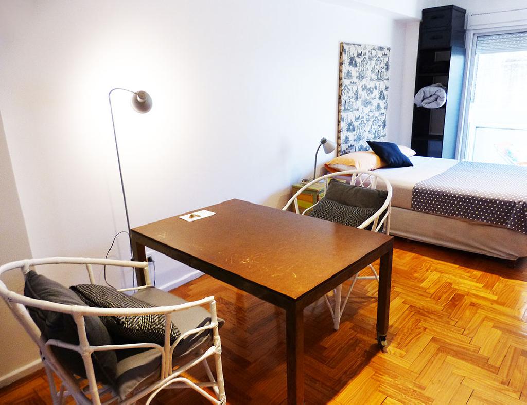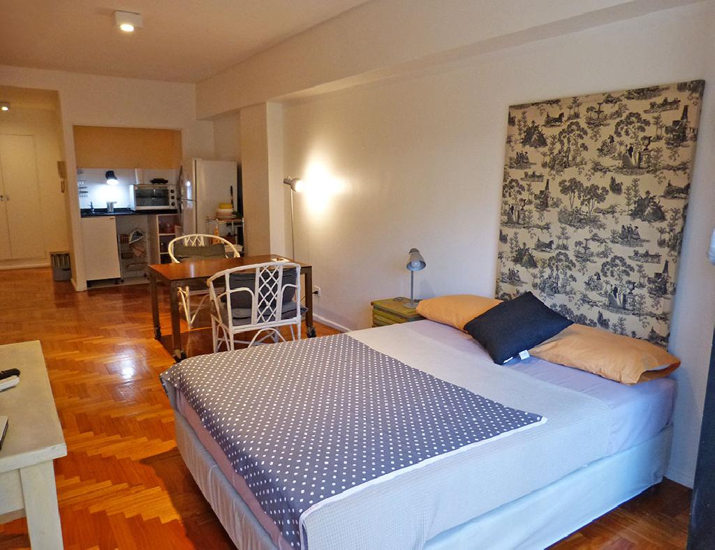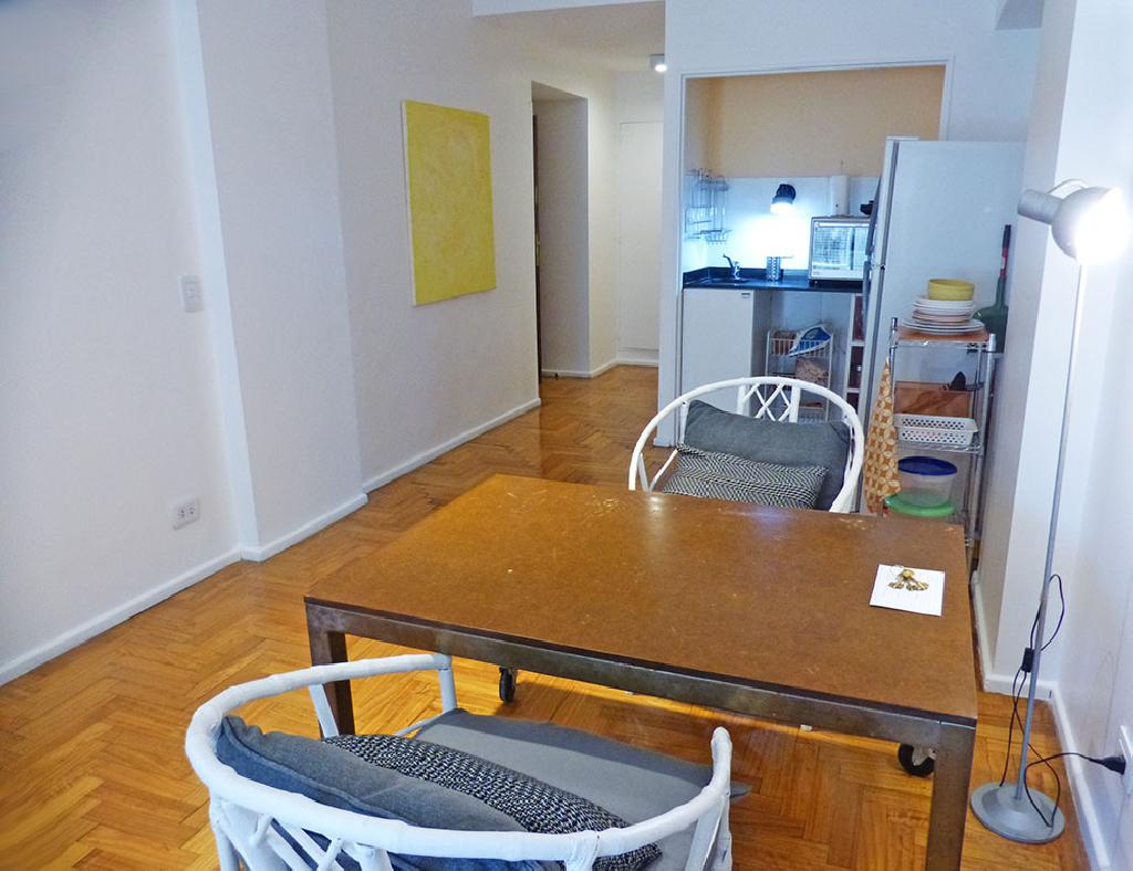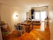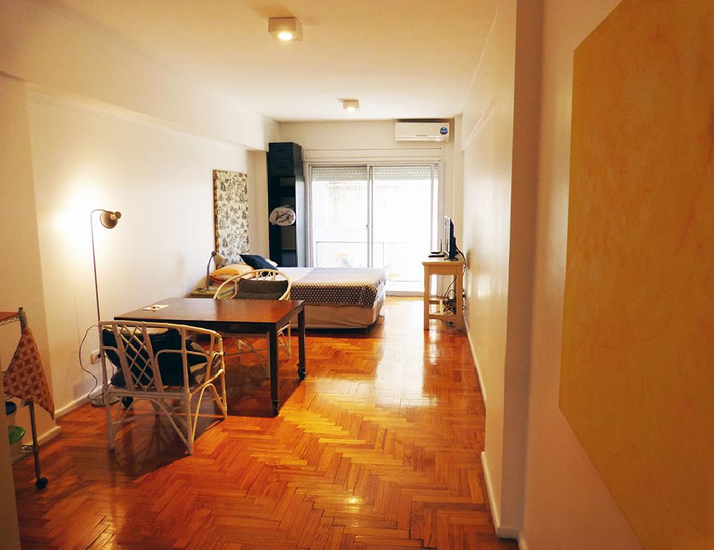 Nice studio with a central location in a commercial area just a few steps from Santa Fe and Córdoba Avenue, the subway station and surrounded by many universities, cafes,restaurants and shops. The apartment offers a dining area connected to an equipped kitchenette with electric home appliances, a bedroom area with a double bed, one full bathroom and a balcony. It is equipped with Wi-Fi internet, cable TV, air conditioning (cold-heat), microwave, grill refrigerator with freezer, dishes, sheets and towels. NOTE: stays longer than 30 days pay an additional charge of U$25 for electricity consumptions ( proportional for shorter stays ).