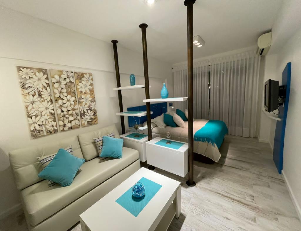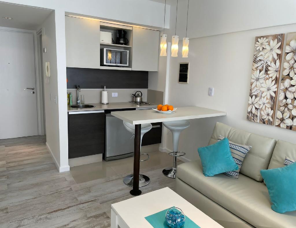 Beautiful apartment located in Palermo Viejo, an area full of restaurants, coffee-shops and pubs, well-known for its active nightlife, a few blocks away from the Santa Fe avenue and the subway stop. The flat is nicely decorated on the 8th floor in a modern building. It offers a living-dining with a sofa-bed, a bar connected to an equipped kitchen, a bedroom area with a double bed, one full bathroom and a lovely balcony facing the street. The apartment is equipped with Wi-Fi internet access, cable TV, fridge, microwave, dishes, kitchenware, linens and towels. The building has a nice terrace with a swimming pool (available only in summer season), solarium, gym, jacuzzi and laundry. A great option, very comfortable with an excellent location. NOTE: an additional fee of U$1per day is requestes for electricity consumption.