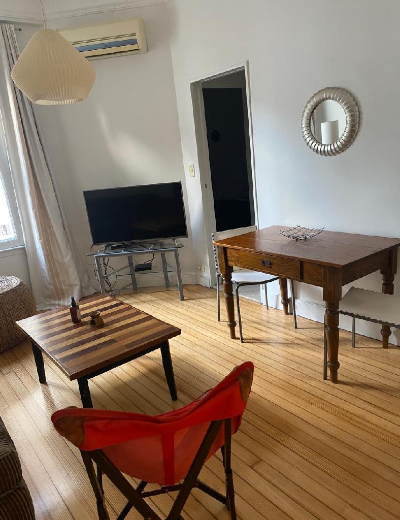 This cute two-bedroom apartment is greatly located just one block away from the famous Florida street and the Galerias Pacifico mall, and two blocks from the beautiful Plaza San Martin. The flat offers a comfortable living-dining room, the master bedroom with a king size bed, a second bedroom with twin beds (one pulls out) and a desk area, two nice bathrooms (one of them with bathtub and the second one with shower), and an equipped kitchen with a breakfast area. The apartment is equipped with Internet(Wi-Fi), cable TV, DVD, air conditioning in the living room and in master bedroom, refrigerator with freezer, electric oven, coffee-maker, toaster,washing machine, kitchenware, dishes, linens and towels. All the rooms were decorated with delicate good taste by a professional designer. A very elegant option just steps away from everywhere. The building is one of the best-preserved art-deco buildings of Buenos Aires and has 24 hours doorman..NOTE : Minimum stays 3 months. Extra monthly cost of us$ 50 for services
