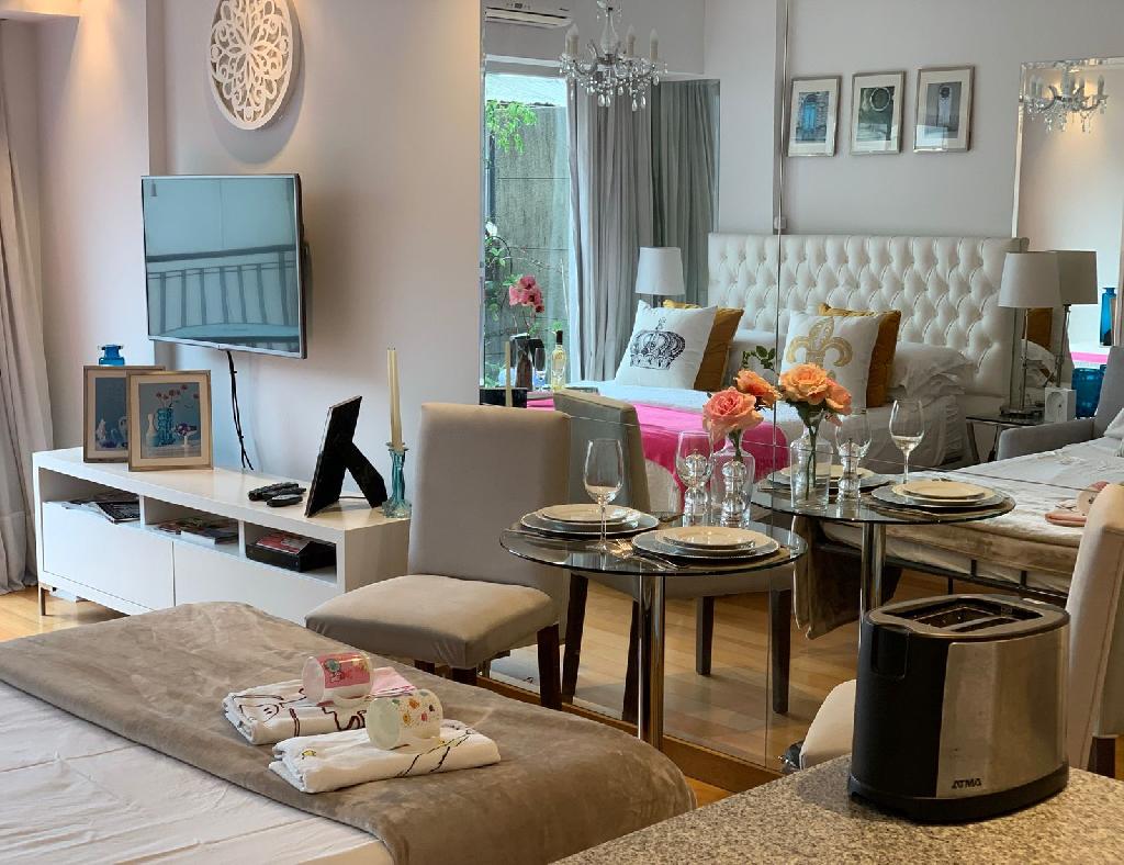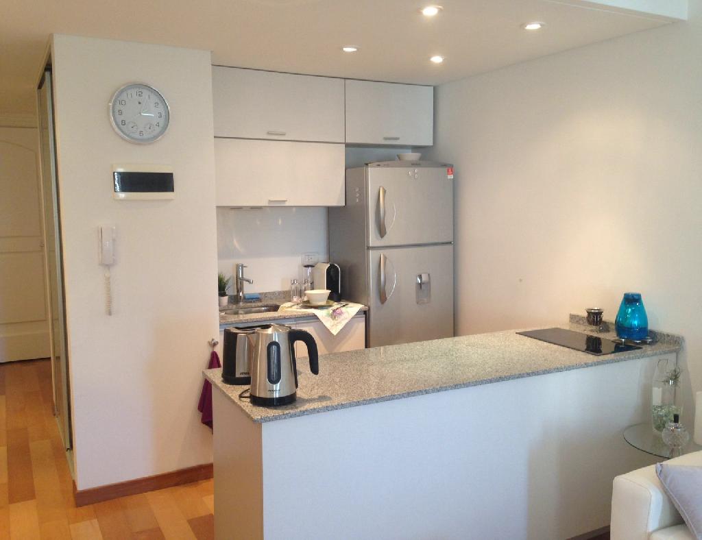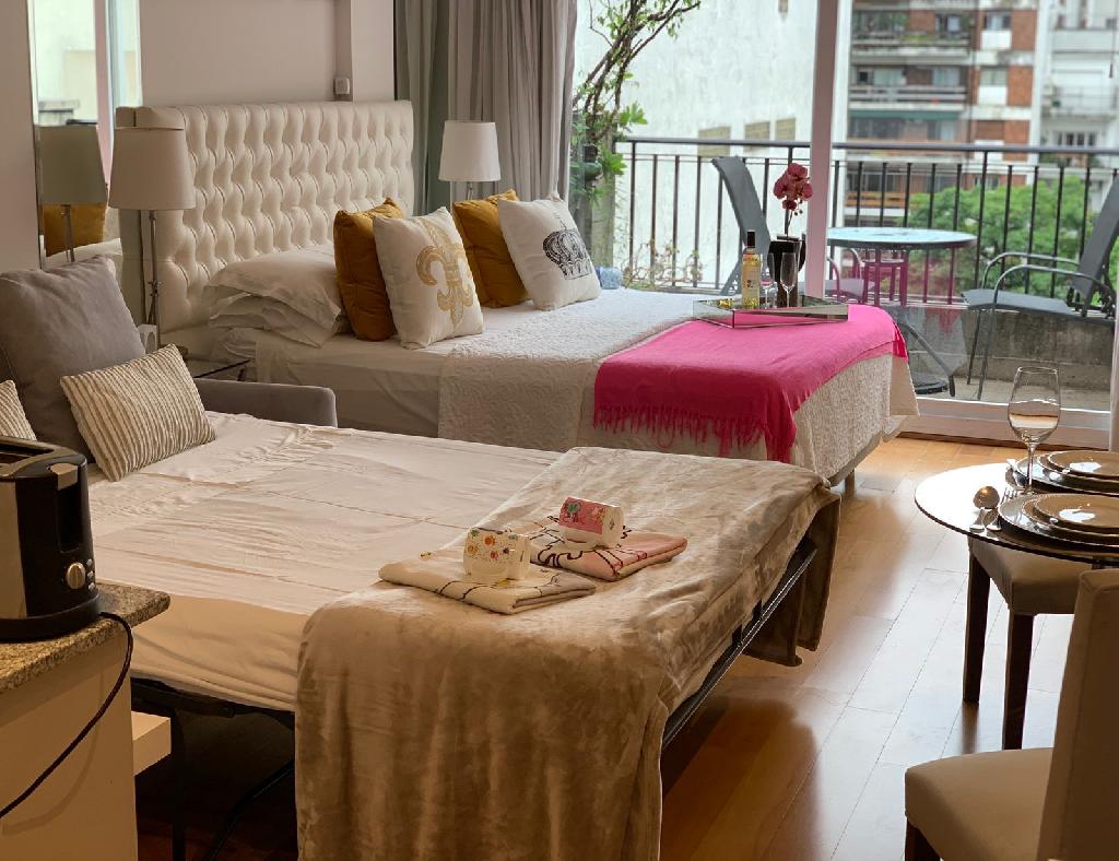 Amazing apartment greatly located in the upscale Recoleta neighbourhood, just a few steps from the Pueyrredon Avenue, an area surrounded by several cafes, good restaurants, shopping areas and nice parks. The flat is luxury furnished offering all the comfort you need to have a pleasant stay. It features a cute living-dining with a sofa-bed and a round table connected to an equipped open kitchen with a breakfast bar, a bedroom area with a queen size bed, one bathroom with scottish shower.and a lovely balcony facing the street. The apartment is equipped with Internet (Wi-Fi), cable TV, air conditioning (cold-heat), fridge with freezer, microwave, dishes, kitchenware, linens and towels. The apartment is on the 8th floor in a modern building with gym, laundry, sauna and 24 hours doorman. A great option, bright and comfortable with an excellent location.