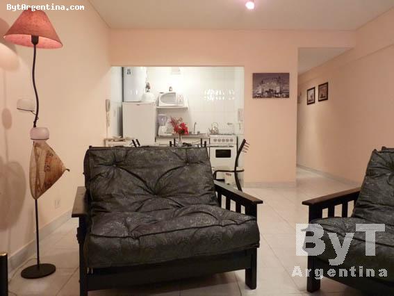 One-bedroom apartment located in the Congreso district, close to the Corrientes Ave. with its several restaurants and cultural activities. The flat has one bedroom with a queen size bed, a living room with two singles sofa-bed, a dining area with a table for four, an equipped american -open- kitchen and one bathroom with shower. The apartment is equipped with Internet (WiFi), cable TV, stereo, refrigerator, microwave, air conditioning in the bedroom, dishes, kitchenware, linens and towels. The building has 24 hours doorman.