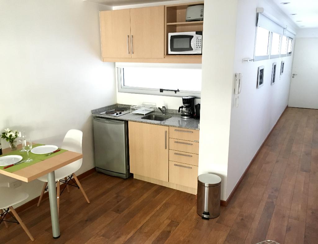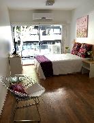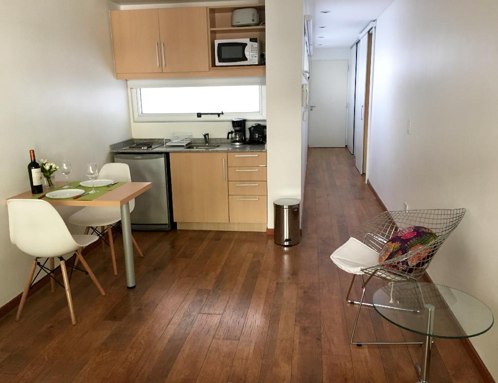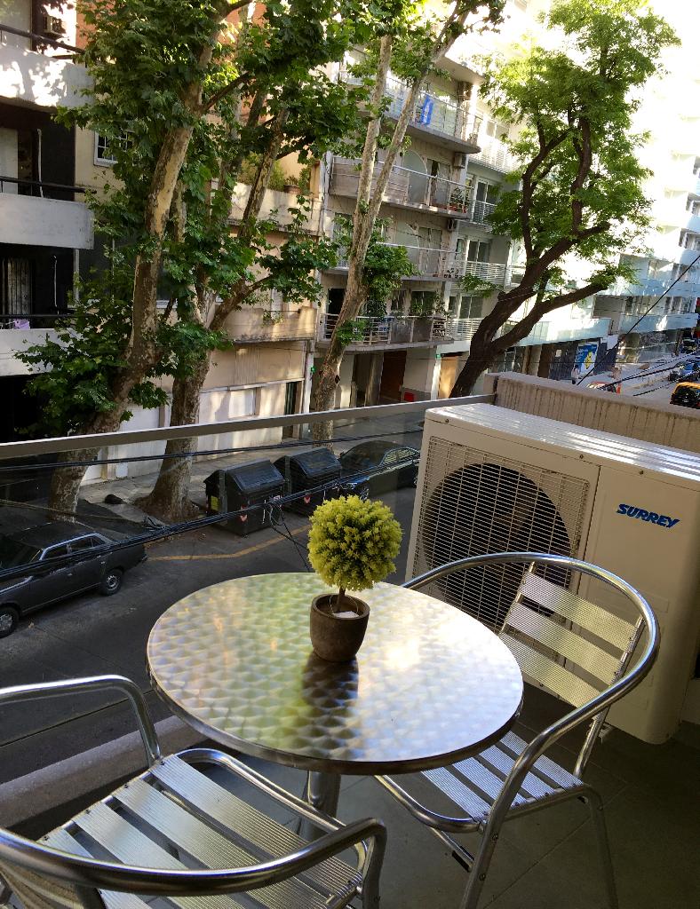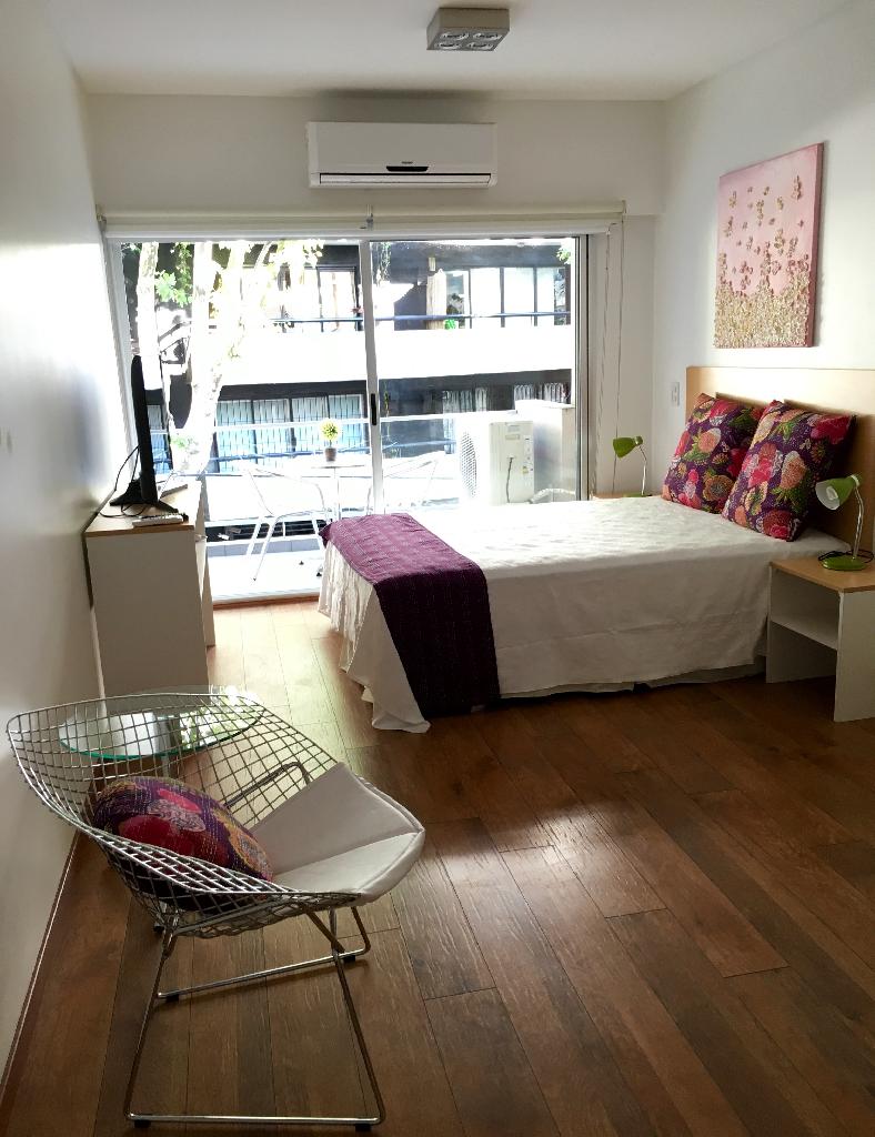 This is a beautiful apartment, greatly located in one of the nicest areas of the Palermo district, surrounded by green areas, beautiful parks, coffee-shops and good restaurants. The flat offers a living dining with an armchair and a table for two people, a bedroom area with a double bed, an equipped american kitchen, one full bathroom and a lovely balcony facing the street. The apartment is equipped with Wi-Fi internet access, cable TV, air conditioning, fridge, microwave, dishes, kitchenware, linens and towels. Note . A monthly extra of US$30 must be paid for electricity consumption.